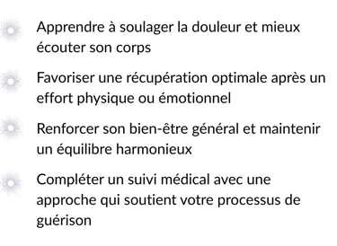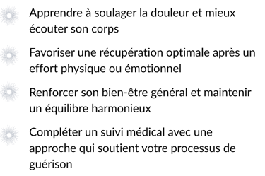 En fonction de votre objectif, 2 à 5 séances sont généralement recommandées pour amorcer un changement durable et retrouver plus de fluidité dans votre quotidien.