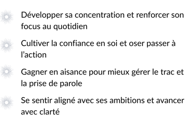 Des séances personnalisées pour vous aider à retrouver équilibre et confiance en vous.